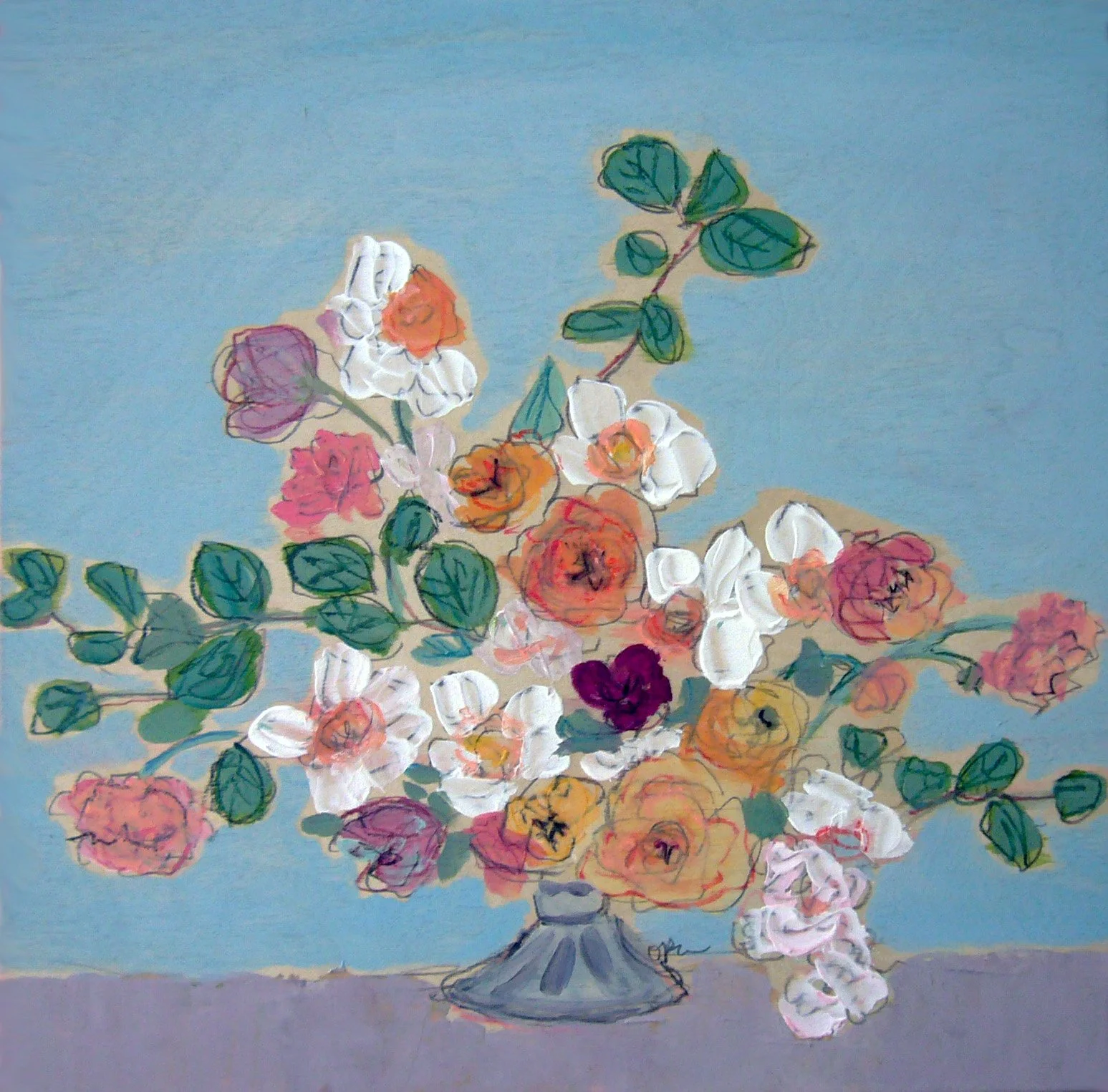 24 x 24 Bouquet with Roses and Blossoms on Wood Panel