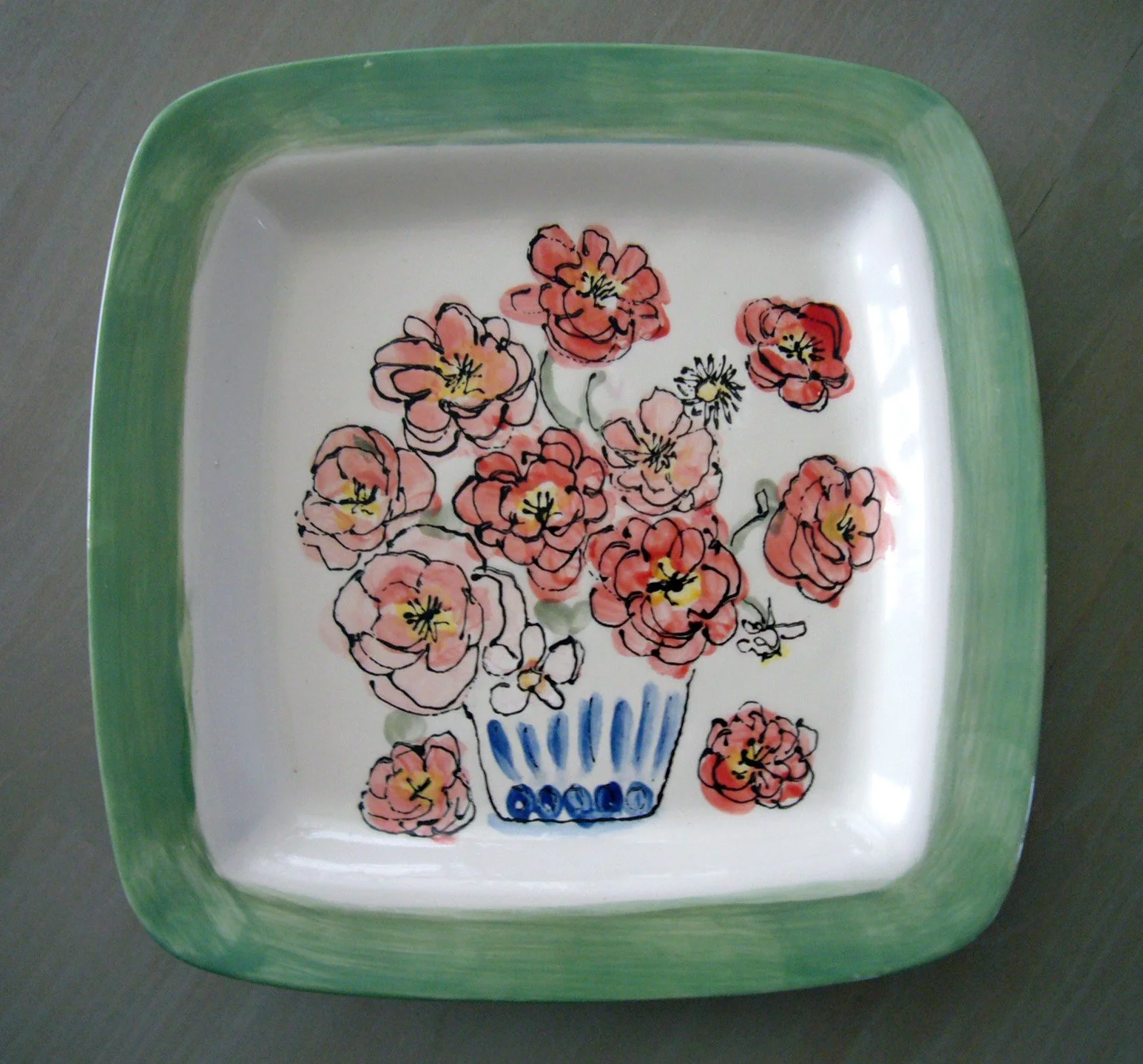 10" Hand-painted Square Ceramic Plate with Peonies